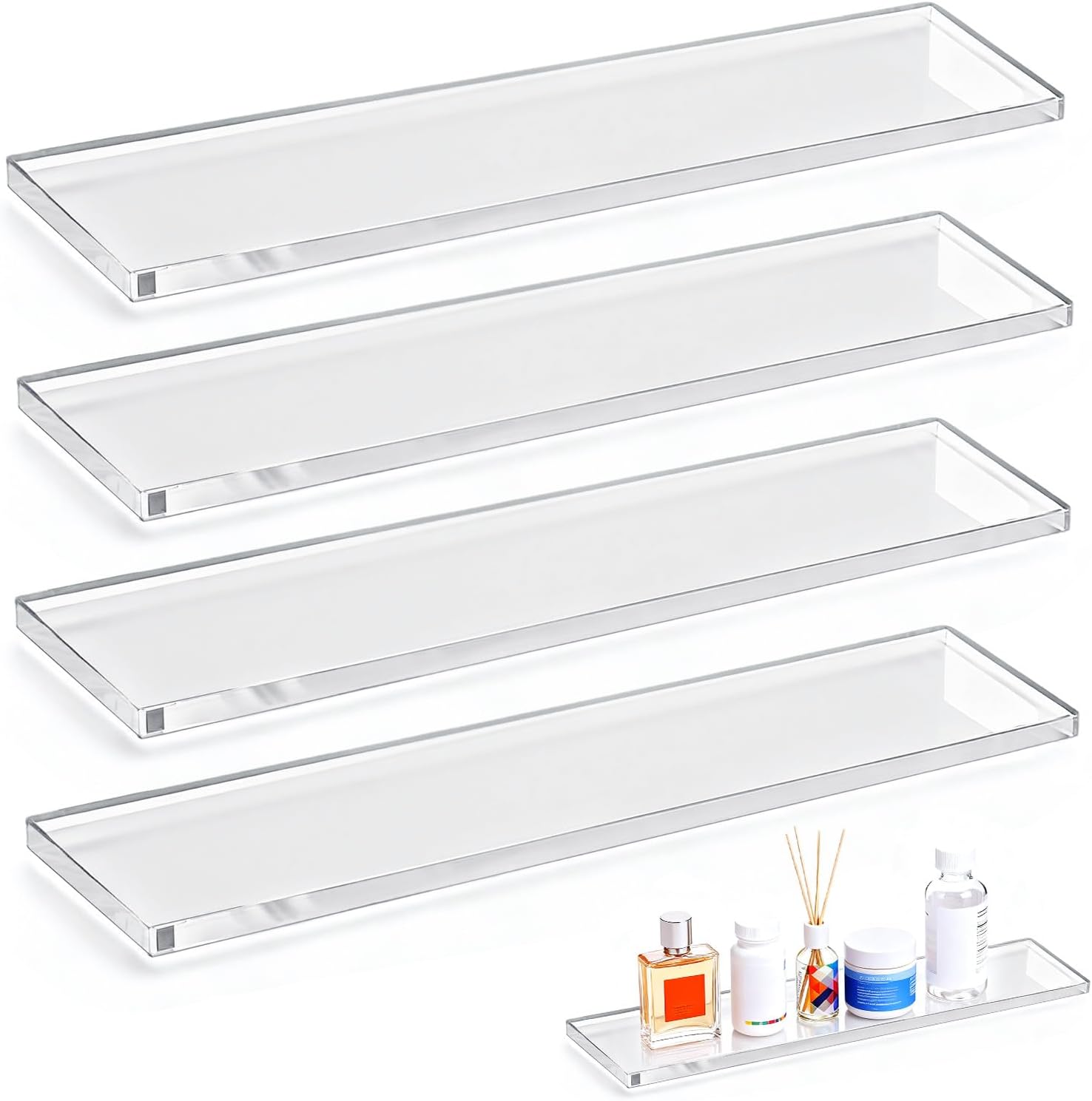 4 pcs 13.25 inch Medicine Cabinet Shelf Acrylic Replacement Shelves for Medicine CabinetSize: 13.25*2.99*0.31inchMaterial: AcrylicNotes:For manual measurement, please allow slight errors in size.The color may have a slight difference due to different screen displays.Please measure the inner shelf size before place order